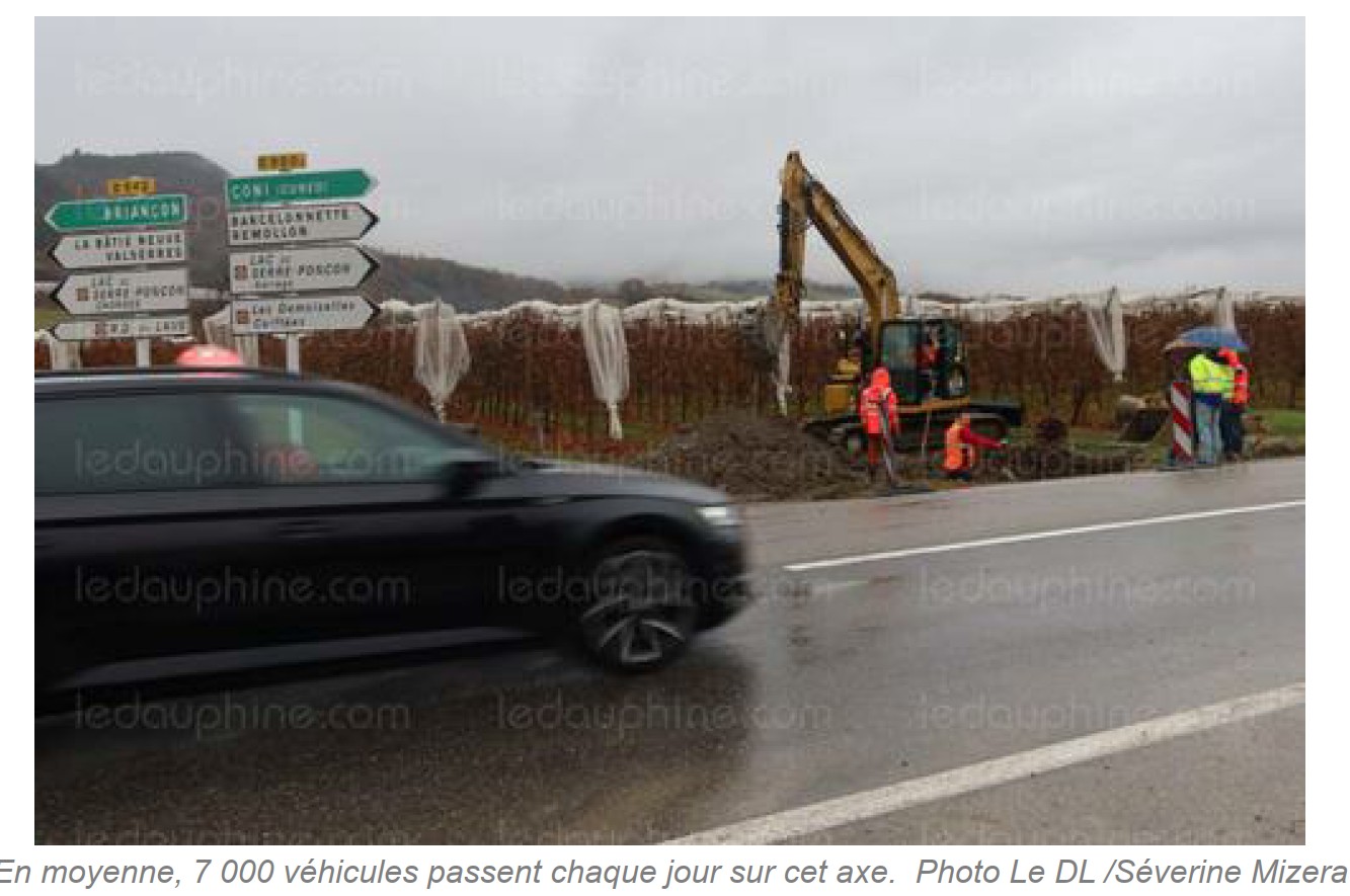 En moyenne, 7 000 véhicules passent chaque jour sur cet axe. Photo Le DL /Séverine Mizera De la sortie de l’autoroute à La Saulce en passant par la route départementale 942 pour rejoindre la vallée de l’Avance et Montgardin, des travaux visent à moderniser le réseau routier départemental.